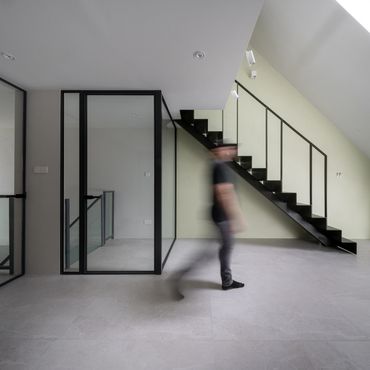 Internally, the residence continues to embrace a classic black and white color scheme, a testament to timeless elegance. This monochromatic approach, along with the strategic use of larger windows, amplifies the natural light within, enhancing the sense of space and openness. The minimalist yet sophisticated decor stands as a serene counterpoint to the vibrant cityscape beyond. rebuild and submissions Landed properties Terrace Houses design and build