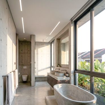 Internally, the house is defined by clean lines, natural light, and a restrained material palette. Large skylights are introduced to enhance ventilation, daylight, and spatial continuity, creating moments of openness within the solid concrete structure.